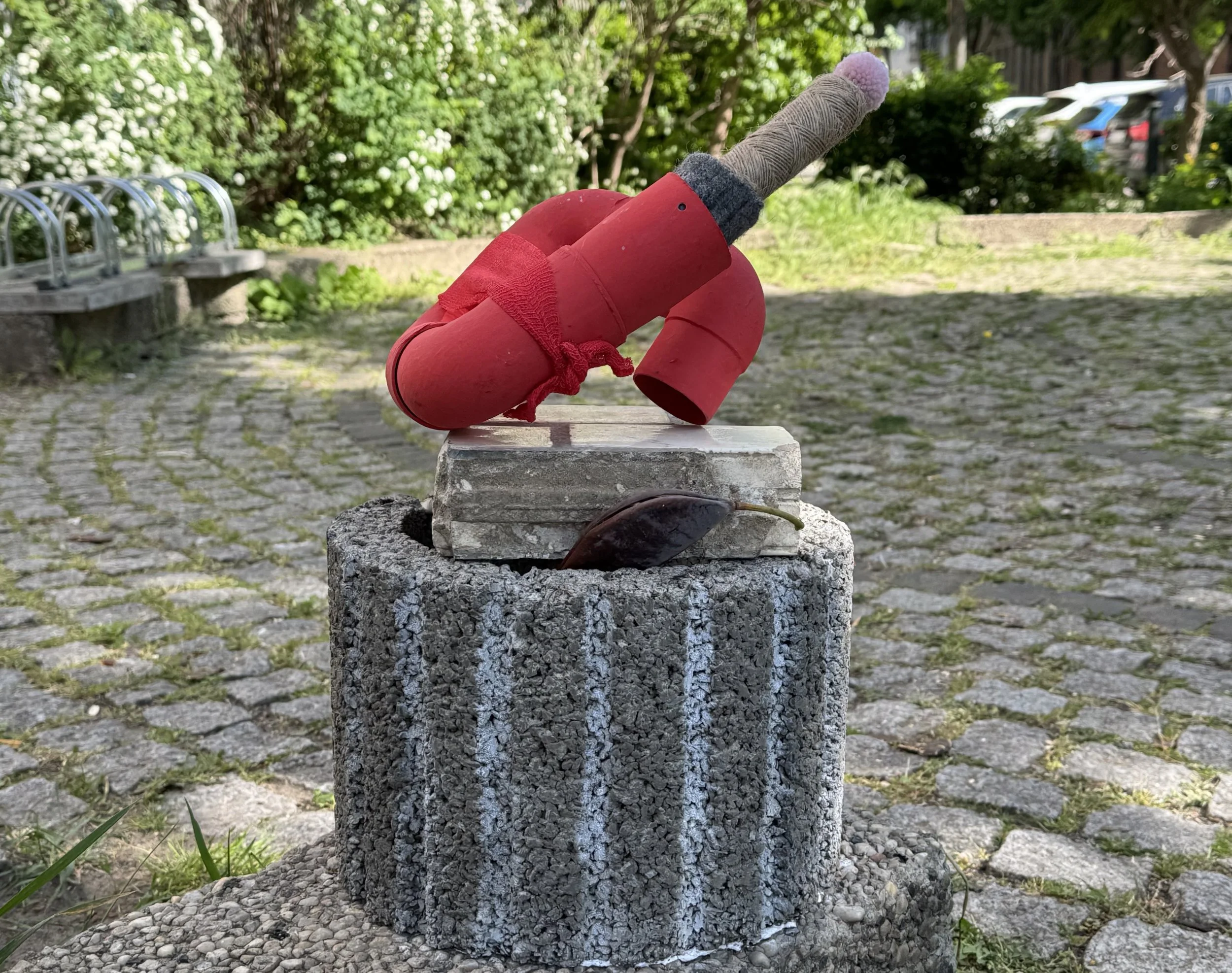 materials: ceramic, mixed media, formica rectangle, on granite base 2025