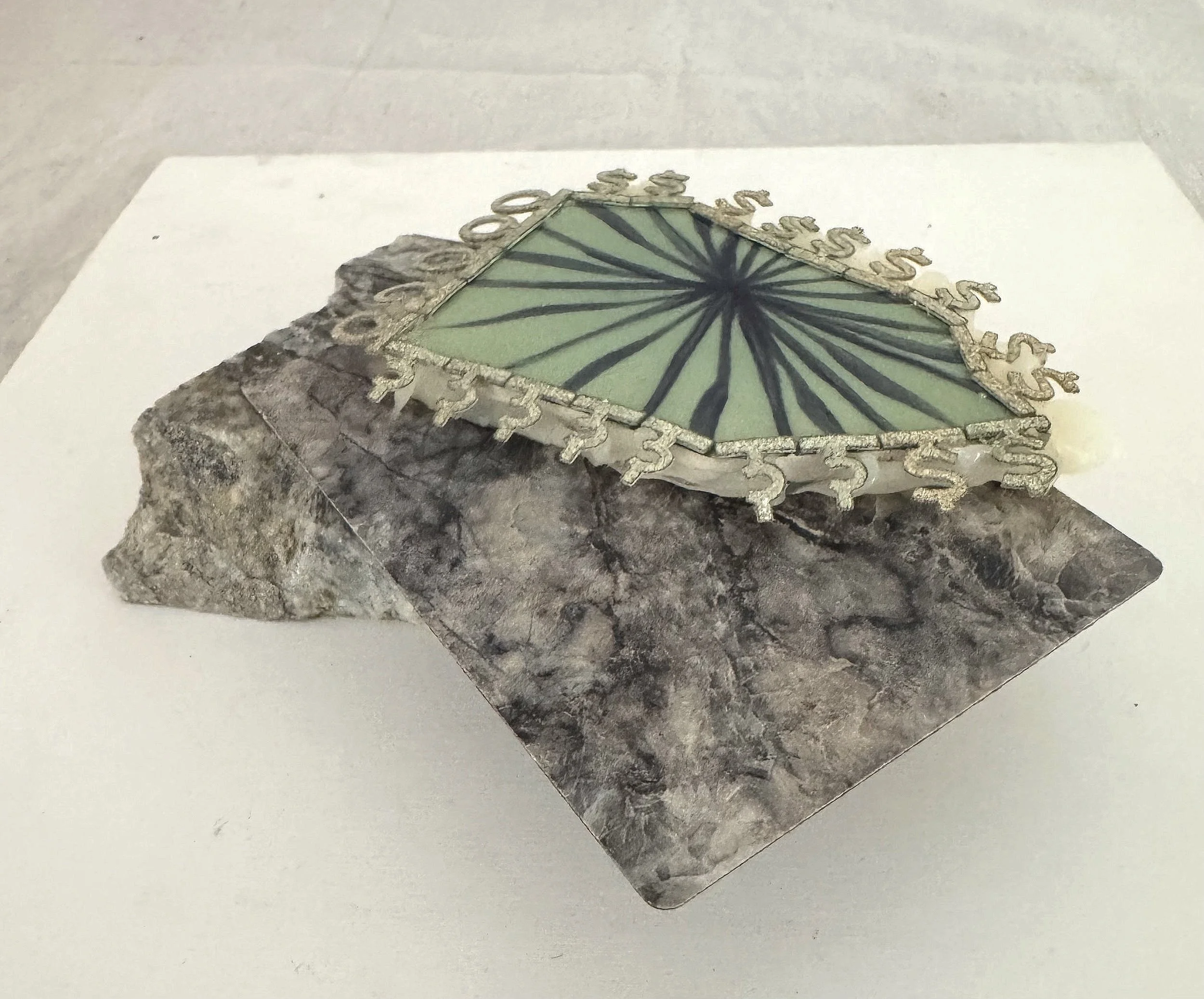 materials: ceramic, mixed media, formica rectangle, on granite base 2025